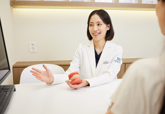 장치별 맞춤 주기에 따라 정기적으로 치과에 내원하여 교정치료를 진행합니다. 치과다운 프로그램에 따라 교정치료 중 주기적인 잇몸 관리, 충치 검진, 구강위생관리 교육을 병행합니다.