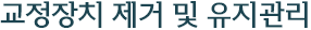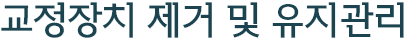 치아 교정이 완료되면 장치를 제거합니다. 교정된 치아를 유지하기 위해 일정 기간 동안 유지장치, 교정 보조장치를 착용합니다. 유지관리를 위해 정기적으로 치과에 내원하여 검진합니다.